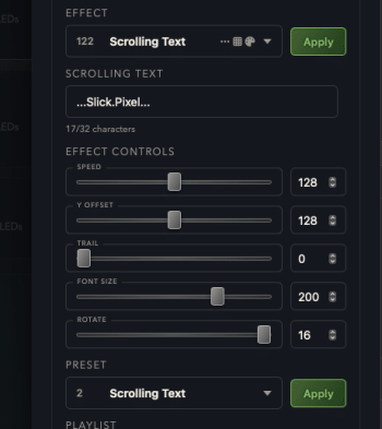 Slick Pixel is purpose-built for WLED users who need more control than the web UI allows. Whether you’re running architectural installs, immersive environments, pixel art, or large LED arrays, Slick Pixel gives you structured control, clean scene management, and precision mapping tools.