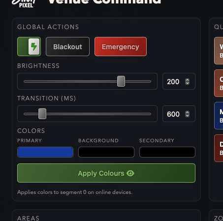 Slick Pixel is purpose-built for WLED users who need more control than the web UI allows. Whether you’re running architectural installs, immersive environments, pixel art, or large LED arrays, Slick Pixel gives you structured control, clean scene management, and precision mapping tools.